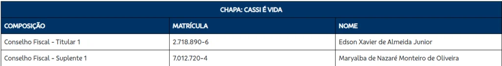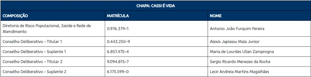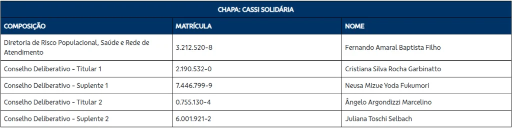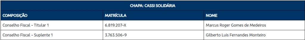 Três chapas se inscreveram para disputar a eleição que escolherá o futuro diretor de Risco Populacional, Saúde e Rede de Atendimento da Cassi e parte do Conselho Deliberativo e do Conselho Fiscal. O prazo para inscrição das chapas terminou às 18h desta segunda-feira 26 e a eleição será realizada entre os dias 13 e 23 de março. O mandato dos eleitos vai de 1º de junho de 2026 a 31 de maio de 2030.